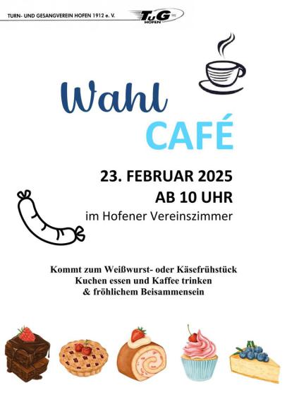 Anlässlich der Bundestagswahl findet im Vereinszimmer der Hofener Rainwaldhalle ein Wahlcafé durch die Abteilung Tischtennis statt.