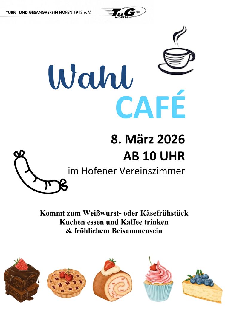 Anlässlich der Landtagswahl findet im Vereinszimmer der Hofener Rainwaldhalle ab 10 Uhr ein Wahlcafé durch die Abteilung Tischtennis statt.